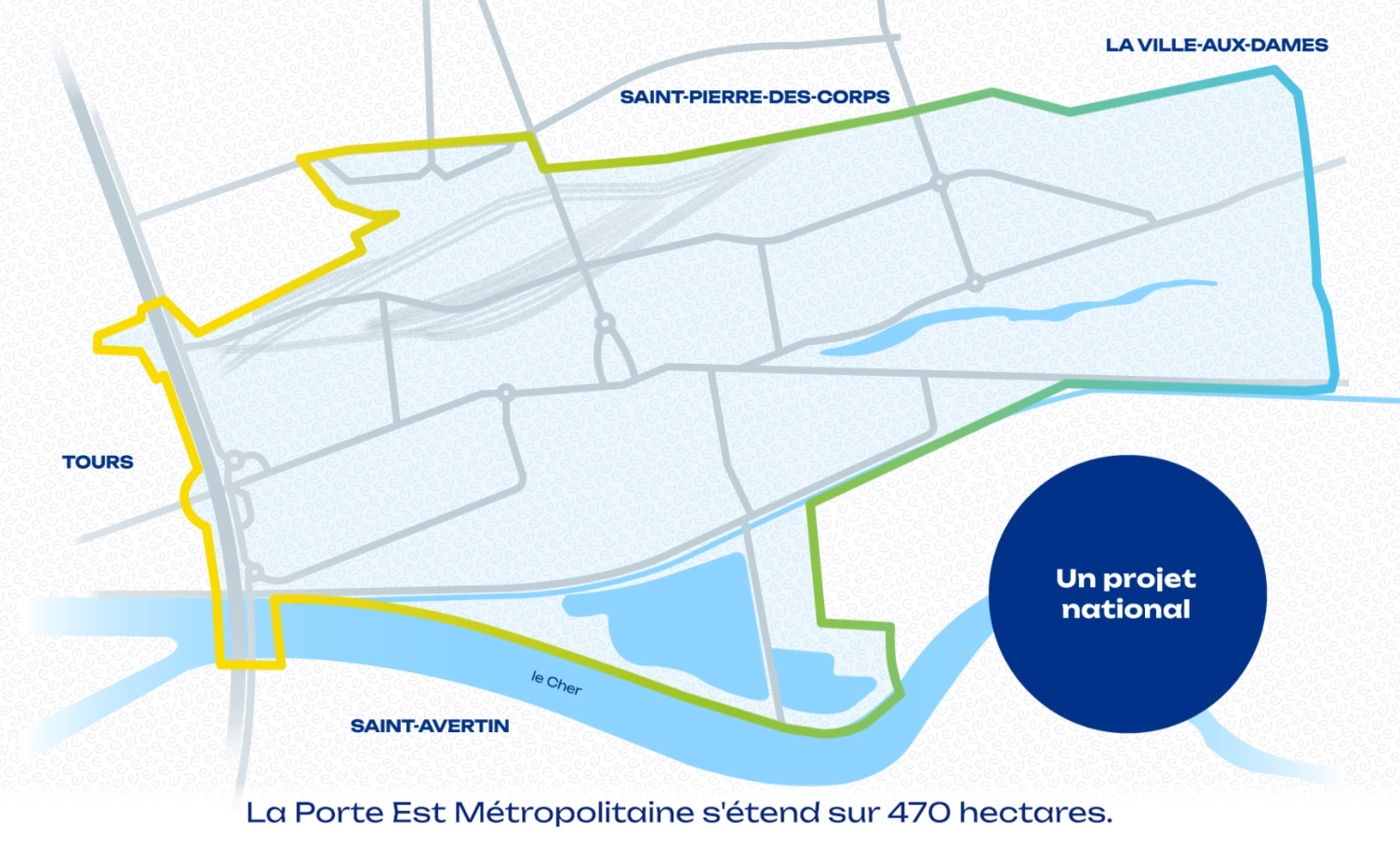 Située entre les emprises ferroviaires, le Cher, l’autoroute A10 et les limites de la métropole, la Porte Est Métropolitaine représente un territoire de 470 hectares au cœur des enjeux de développement de Tours Métropole Val de Loire. Ce secteur, d’intérêt national, fait l’objet d’une transformation majeure grâce à l’engagement de 11 partenaires publics et privés, réunis autour d’un objectif commun : régénérer et moderniser ce lieu pour en faire un pôle durable, accessible et attractif.